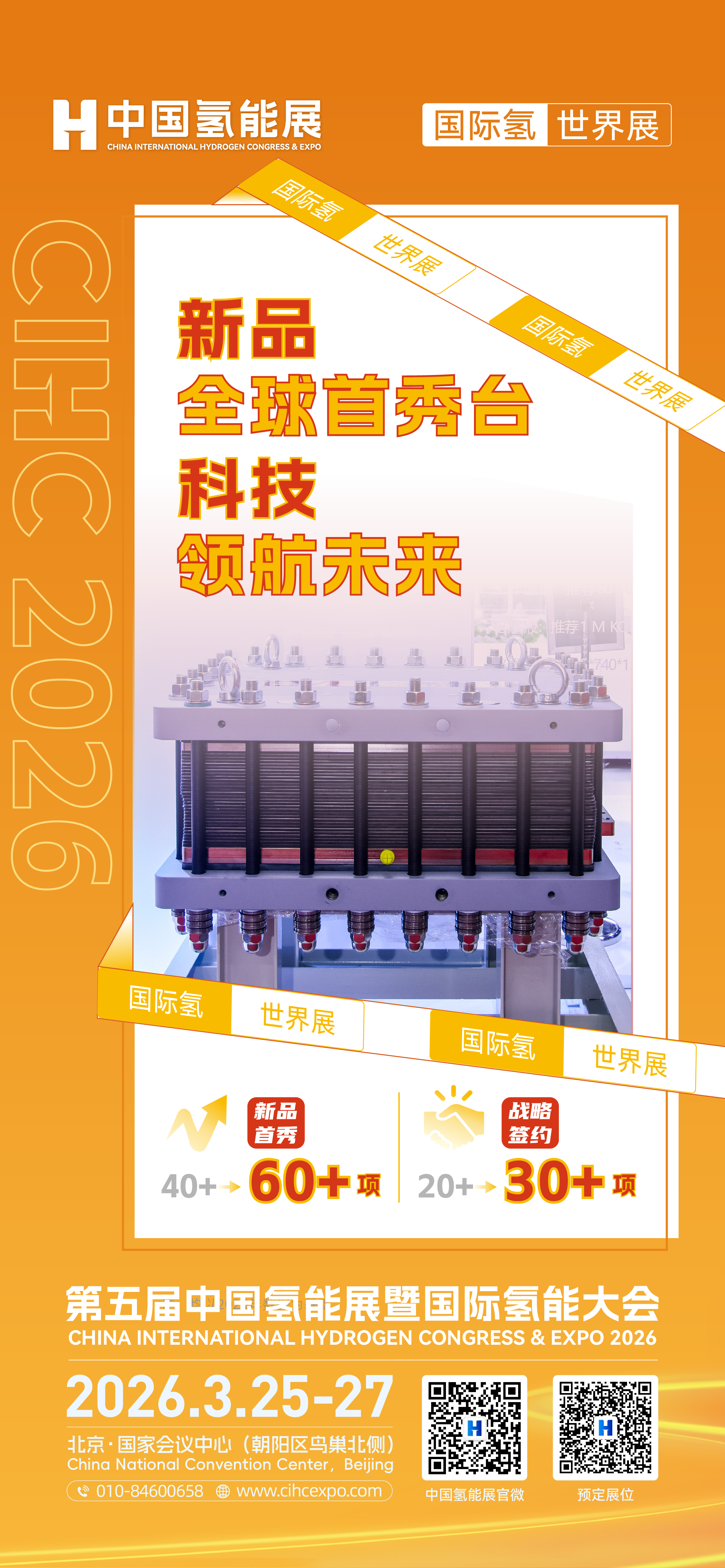 作为“十五五”开局首场行业盛会,CIHC 2026第五届中国氢能展将于2026年3月25-27日在北京·国家会议中心隆重举办,助力企业把握政策方向、抢占发展先机。