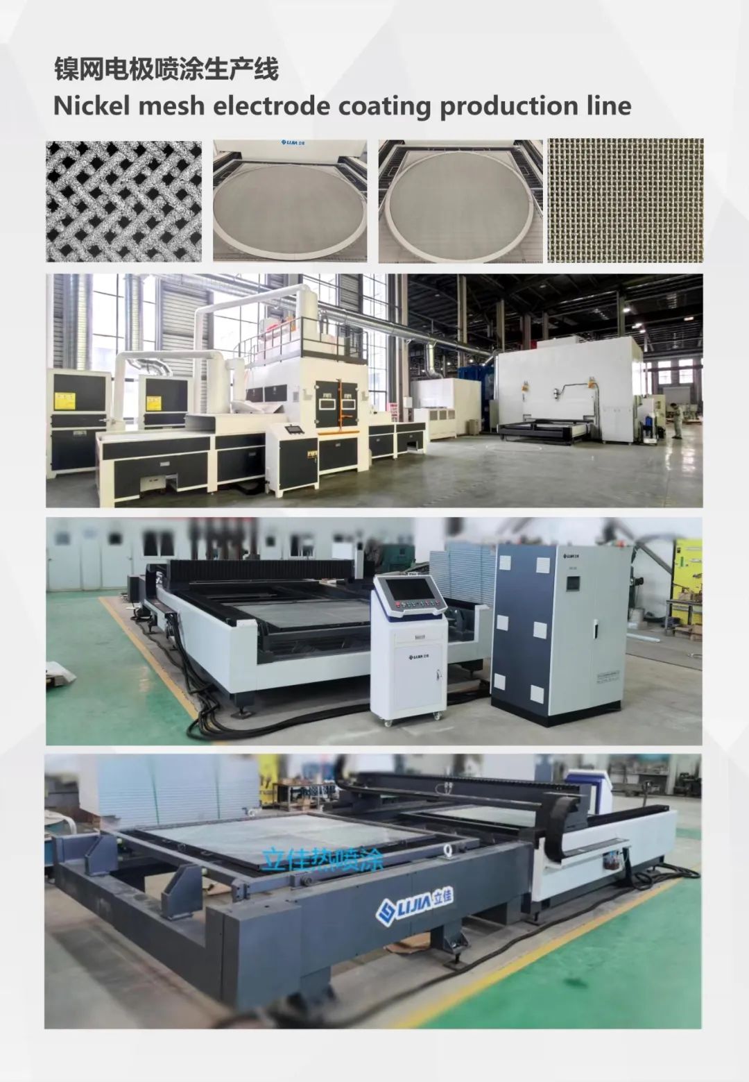 Our company specializes in the continuous automatic spraying production line of nickel mesh electrode, which can prepare the catalyst coating of nickel mesh electrode with a diameter from 1855mm to 2500mm. It has been put into use in many large enterprises in China, and the core technology is at the leading level in the industry. On this basis, the company will be committed to the research and development and platform construction of digital manufacturing and intelligent manufacturing technology. Lijia company has national high-tech enterprises, provincial specialized special new, intellectual property advantage enterprises, provincial and municipal engineering technology research centers, more than 120 patents and software works.