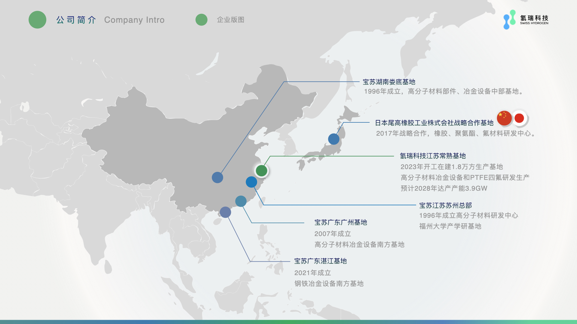 Jiangsu Hydrogen Technology Co., Ltd. was established in 2022, invested by Baosu Mining and Metallurgical Equipment Co., LTD., a well-known manufacturer of polymer materials and metallurgical rollers in China. Its corporate headquarters, R & D center and production base are located in Suzhou, Jiangsu. Baosu Group has production bases in Loudi, Hunan, Guangzhou, Guangdong, Zhanjiang and Changshu, Jiangsu. It has developed R&D cooperation and established long-term strategic partnership in the field of industrialization application of new materials with Japanese industry leader Nippon Ogao Rubber Industry Co., LTD and Fuzhou University. The company has strong R&D and iteration capabilities and has obtained more than 40 patents. High-tech enterprises; Specialized in special new little giant and other honors. Jiangsu Hydrogen Rui focuses on the development and production of high-performance modified polytetrafluoroethylene sealing gaskets, with an annual capacity of more than 110,000 pieces, that is, 1.6GW. Hydrogen Rui is committed to helping customers overcome technical difficulties, providing better solutions, promoting material innovation, and helping the development of green hydrogen equipment.