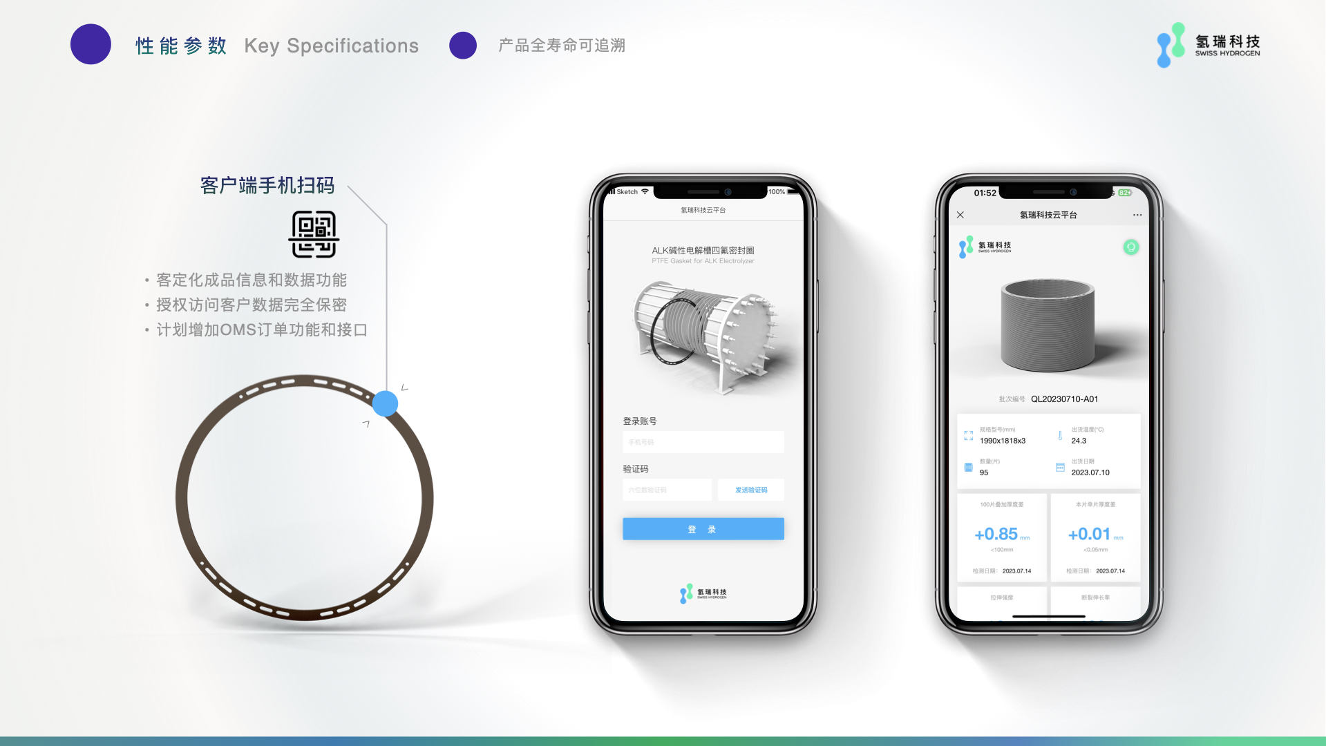The high-performance modified polytetrafluoroethylene gasket for alkaline electrolyzer developed and produced by Jiangsu Hydrogen Rui has the core advantages of high processing accuracy, high consistency of batch performance index, high material rebound rate, low creep rate, easy assembly and easy adaptation. Adopting the industry's cutting-edge intelligent MES production management and QMS digital process quality management system, the product quality is stable, and the product traceability QR code is launched for the first time in the industry to help customers achieve the whole life of parts traceability management. Sealing gasket specifications can be made according to customer demand, the maximum processing diameter can reach 2500mm.