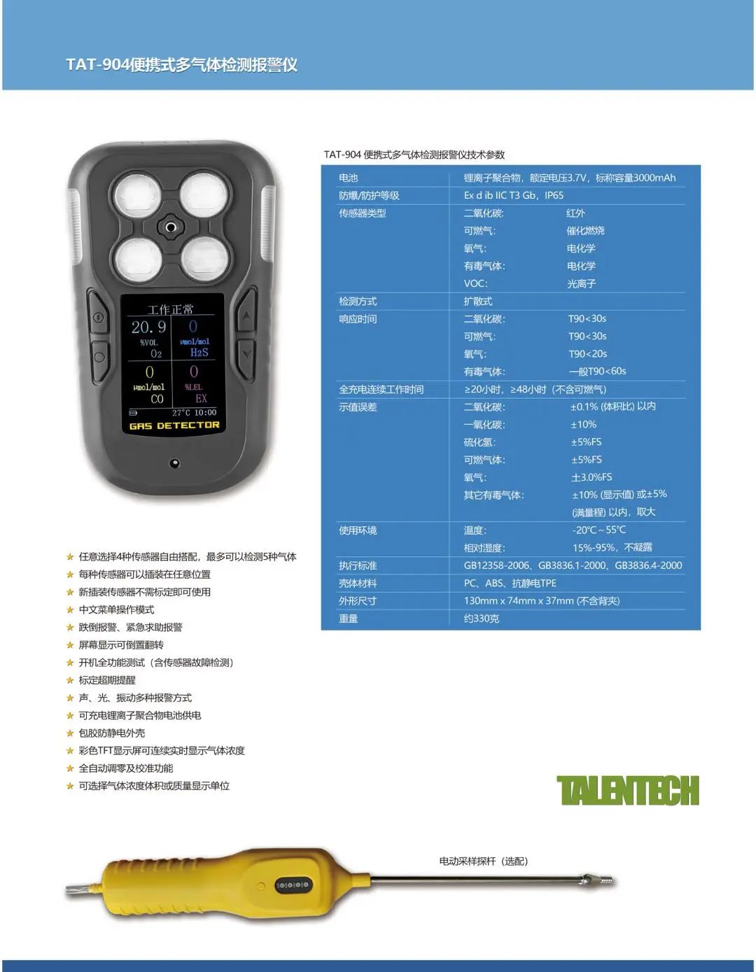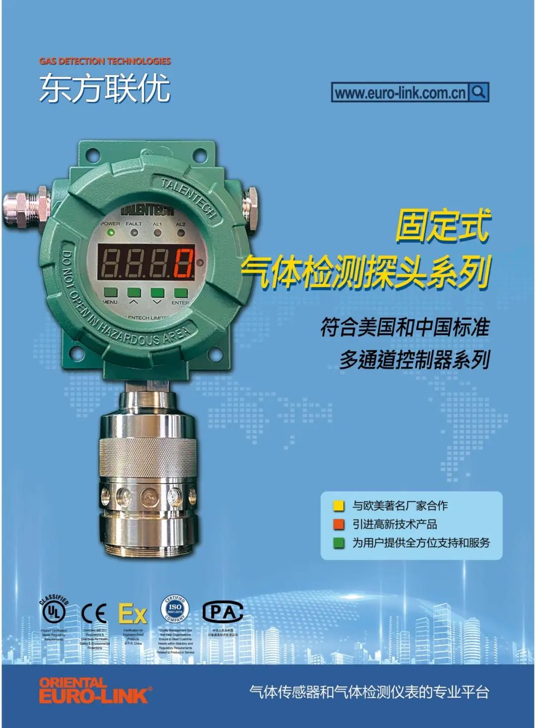 Exclusive agent in China for Talentech (USA), providing gas detectors.