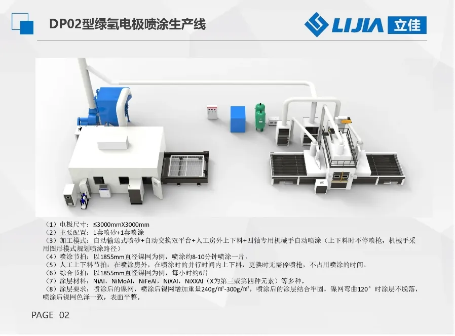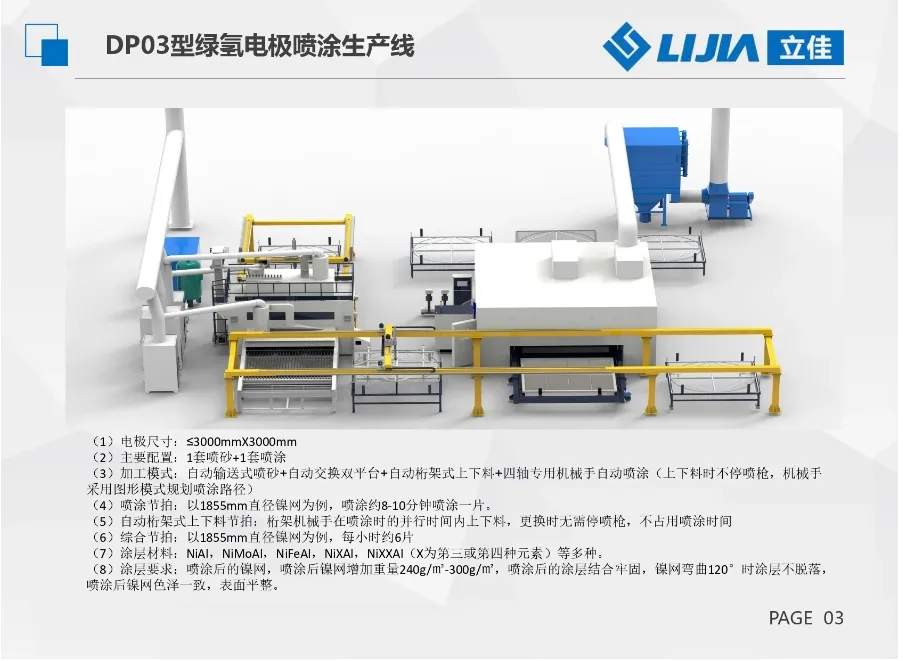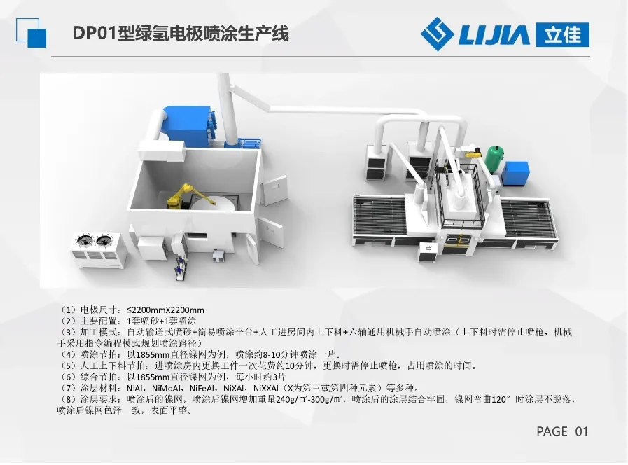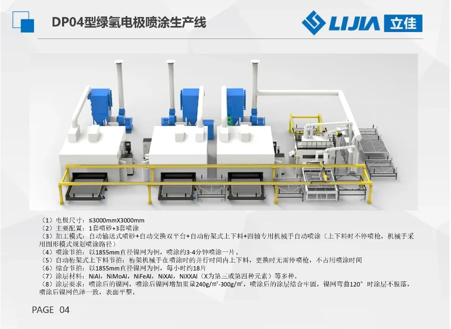 在碱性电解槽制氢领域,立佳公司不断推出新款大尺寸的智能化镍网电极喷涂生产线,以满足市场对高性能、高效率的制氢设备的需求。这些新款生产线不仅具有更高的生产效率和更稳定的性能,还能够适应不同规格和要求的镍网电极喷涂需求。