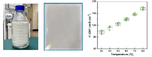 优异的耐碱性(1M aq. NaOH 80℃碱解3000h,电导率损失<5%)
