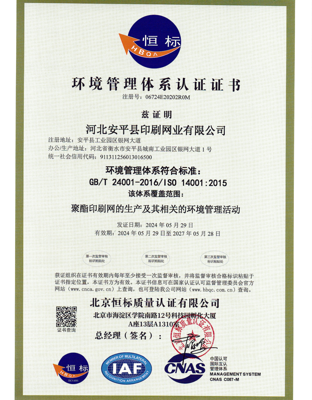 河北安平县印刷网业有限公司始建于1998年,是一家专业生产合成纤维丝网且具备新产品研发能力的企业能生产高质量、高精度的合成纤维网、金属网。