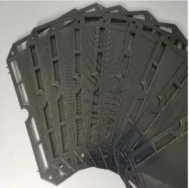 用宝鸡钛业股份有限公司生产的钛板加工而成的PEM制氢双极板。PEM制氢中的双极板是电解槽中的关键组件之一,主要用于分隔单个电解池、传导电流、分配反应气体和冷却剂。要求材料具有导电性、耐腐蚀性、机械强度和轻量化。此展品为金泉益产品。