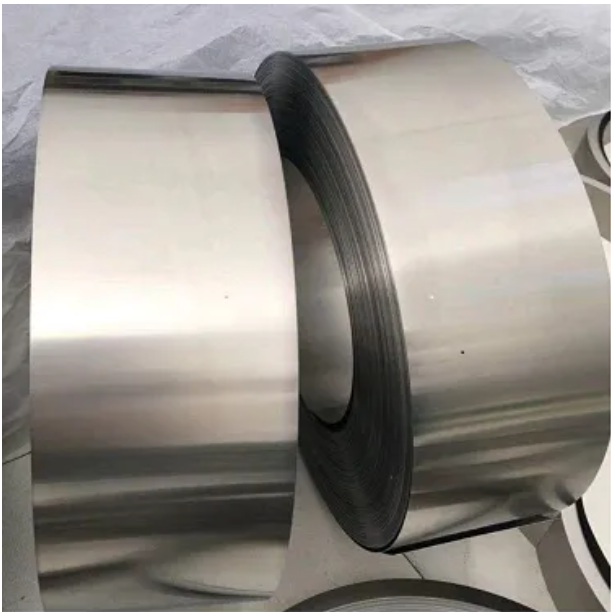 宝鸡钛业股份有限公司生产的钛带。钛合金以其密度低、比强度高且在酸性环境中耐腐蚀优异,在氢燃料电池双极板中具有较高的应用价值。目前燃料电池双极板用钛带典型规格(厚度)有0.075/0.1/0.12mm,厚度公差可做到≤±3um,表面粗糙度Ra≤0.15um,横向延伸率A50≥35%,纵向延伸率突破40%,杯突≥6.5mm,晶粒度≥8级。