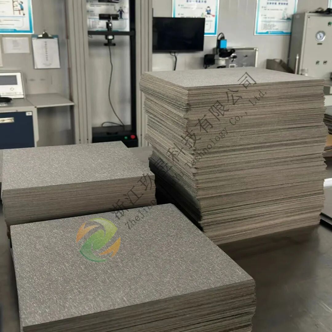 钛粉末烧结材料可以用于电解水制氢扩散层,该产品具有三维立体连贯的孔,有较高的刚性可以承受更高的压力;且粉末压制烧结后的材料,比表面积更大可以更好的与膜电极接触,从而降低接触电阻;该材料可实现超低孔径可以有效对液体起到精密的过滤分离效果。