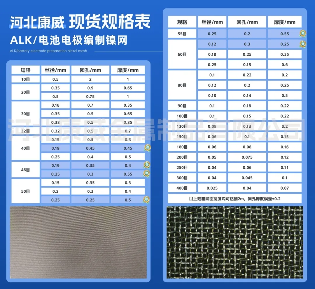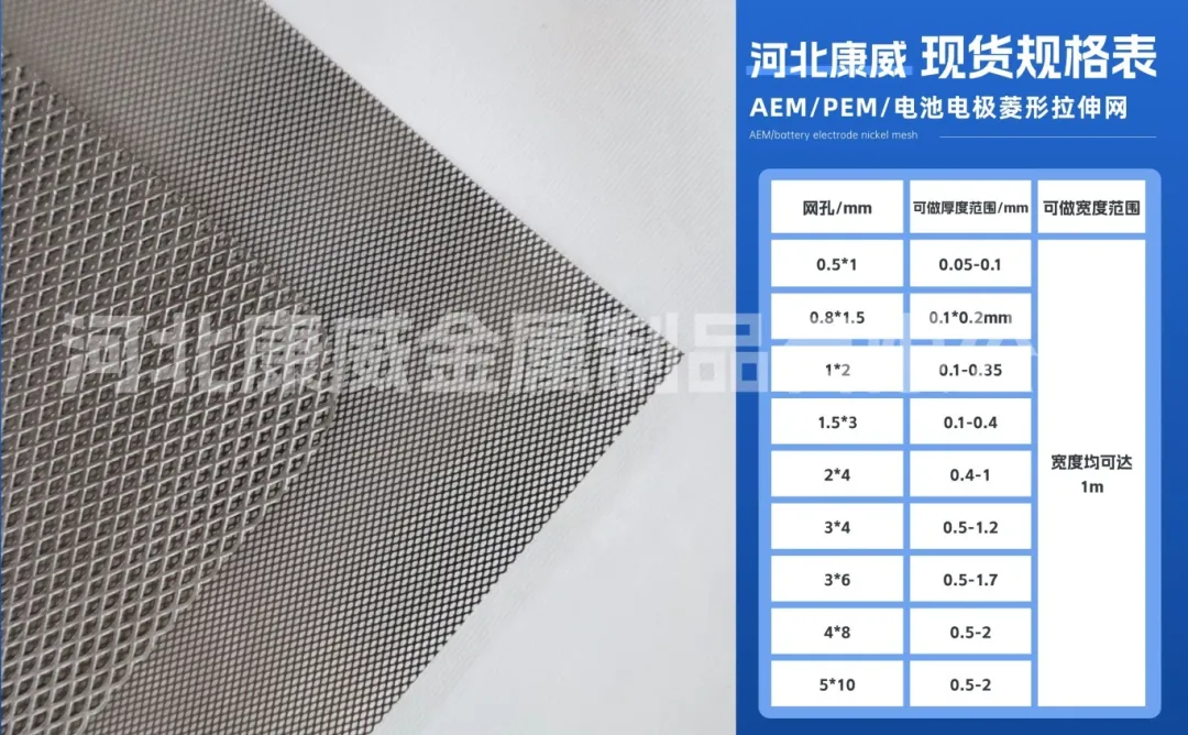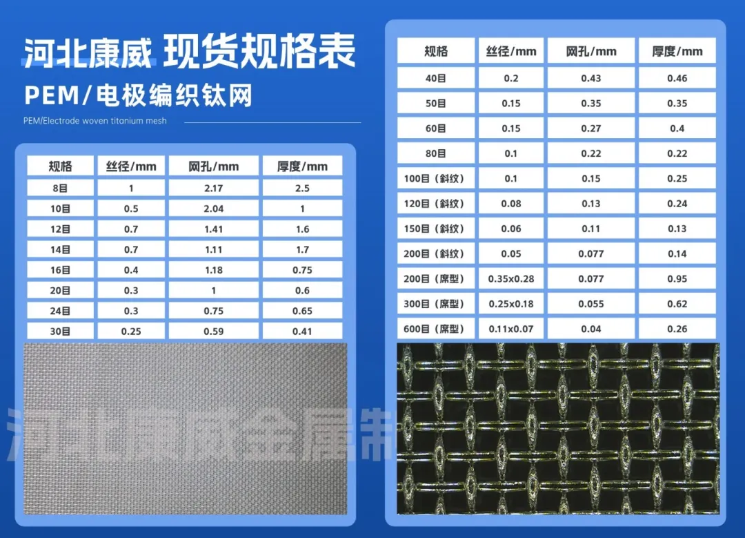 河北康威专业生产:钛丝编织网、钛板冲孔网、钛板拉伸网、镍丝编织网、镍板冲孔网、镍板拉伸网、复合钛网、复合镍网、燃料电池钛网、不锈钢网、铜网等特材金属丝网。
