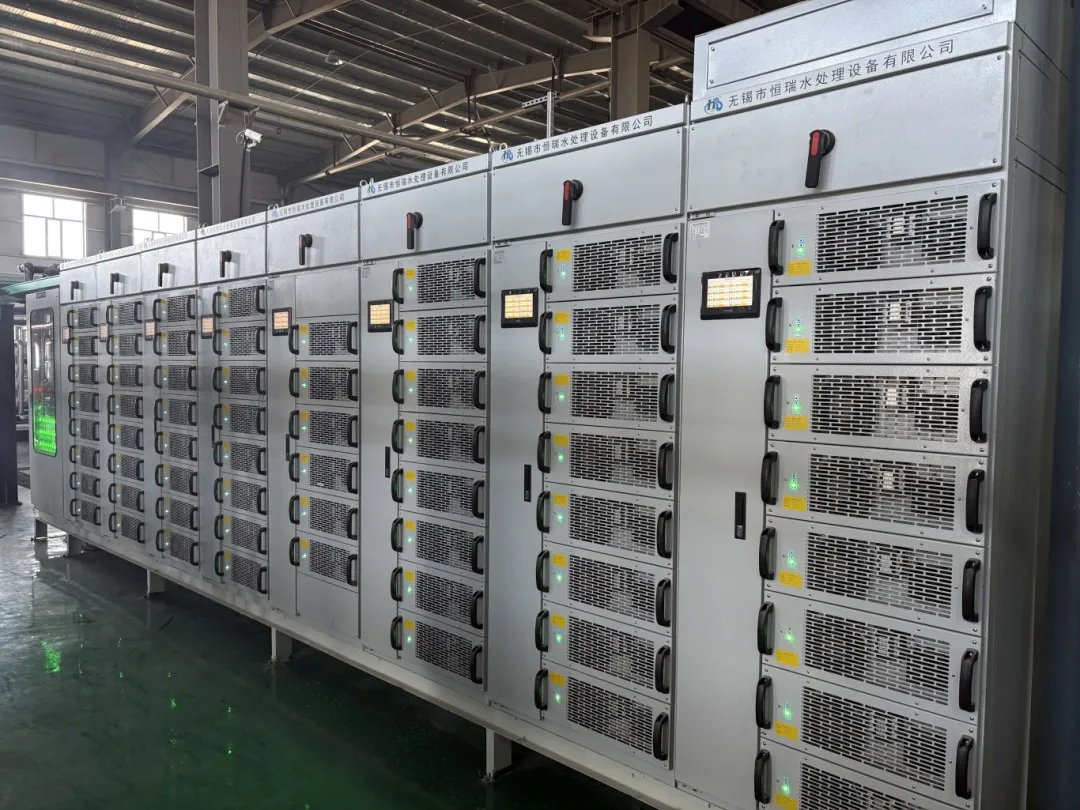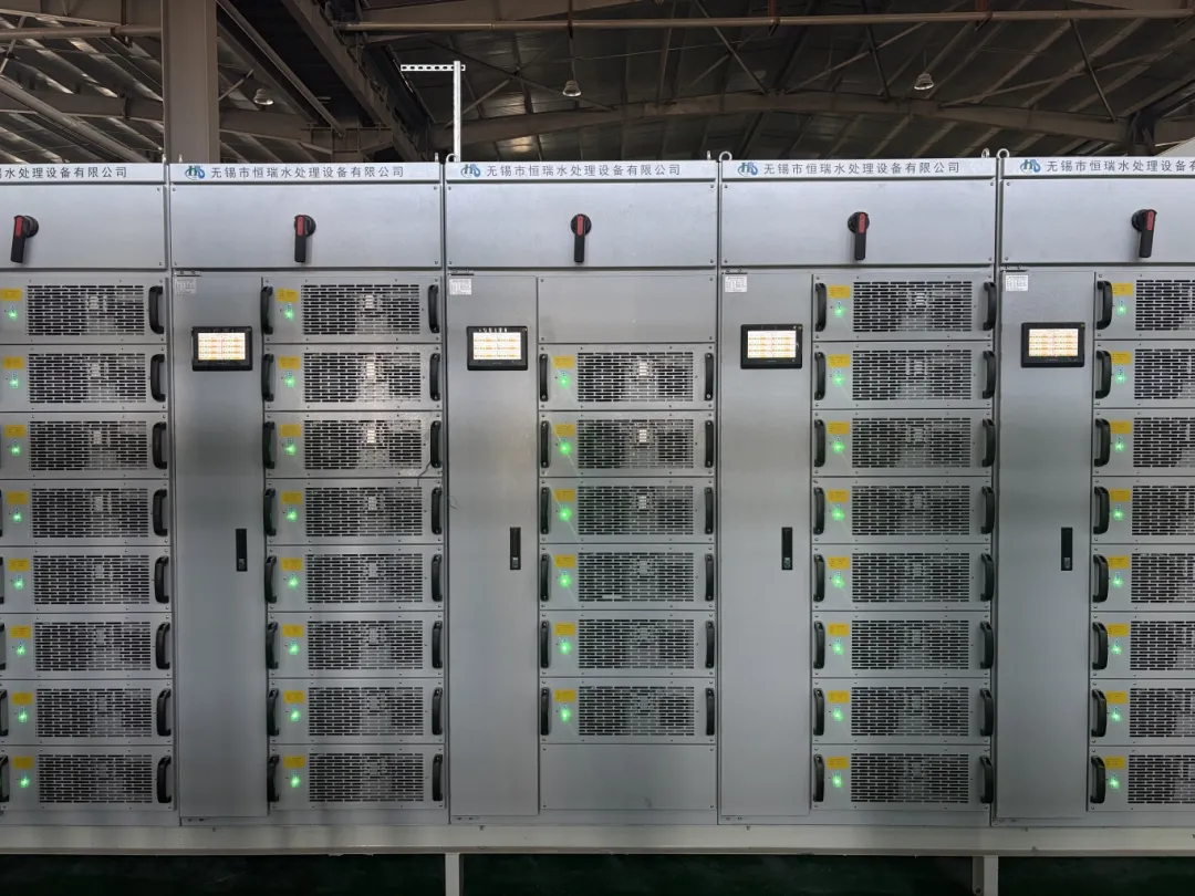 高频开关电源,产品外形美观 , 结构合理 , 采用多模块并联方式组成。全密封、全水冷、模块化、组合式、可增加 N+X 冗余备用系统。各模块的控制采用先进的 RS485 网络控制系统,控制精度高,由于是数字控制,控制信号无衰减,远程控制最快可1.2kM, 方便生产管理和介入 DCS 系统。各模块完全一样,更换模块时,只需将地址码拔成和需要更换的模块一样即可,可在不停机的情况下进行维护,不影响正常生产。采用新型整流模式及整流器件,节能省电。单元机内无水管接头漏水概率几乎为零。无需无功补偿柜 , 功率因素≥0.98,额定效率≥94%, 模块之间的均流控制精度≤1%。具有稳压、稳流控制模式。有软启动、过压、过流、缺相、过热等保护措施。内部线路板采用防酸防雾三防胶,避免电子元器件受环境腐蚀,产品持久耐用。